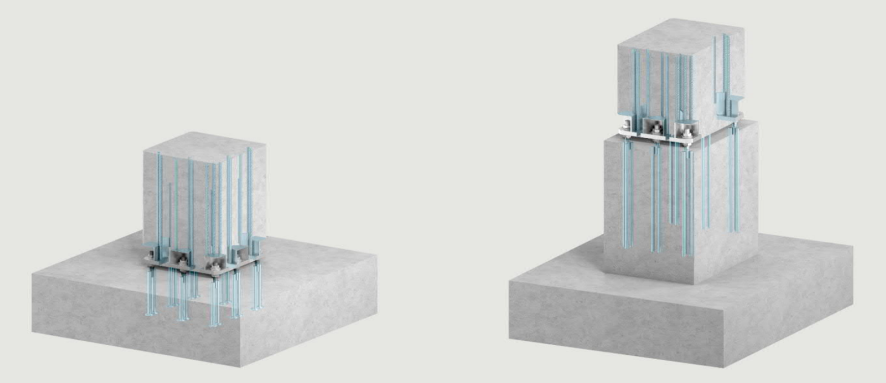 ALP® S series bolts have a removable threaded section whose length and material can be adjusted to suit the corrosion conditions. For designing concrete column connections, we have developed the ACOLUMN® software. Steel column connections are designed using the ASTEEL software.