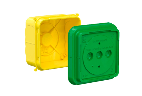 A deep profile hollow void former to provide accurate electrical junction placements in precast concrete soffits and floor slabs. The two part system allows efficient flush fitting placements for electrical junctions, smoke detectors and lighting roses. All boxes are produced to match socket dimensions and fixing centres in accordance with BS4662:2006. For seamless cable routing use in conjunction with 25mm double skin flexible conduit EBC25 and slide nuts EB1224-99.