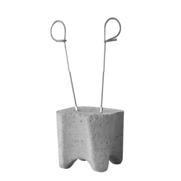 Concrete spacer with twin plastic clips and four point support for minimal contact with formwork.