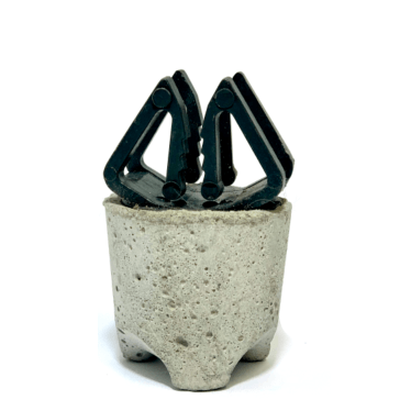 Heavy duty concrete spacer with four point support for minimal contact with the formwork. Complete with our special design plastic clip to accept bar diameters from 16mm to 25mm.