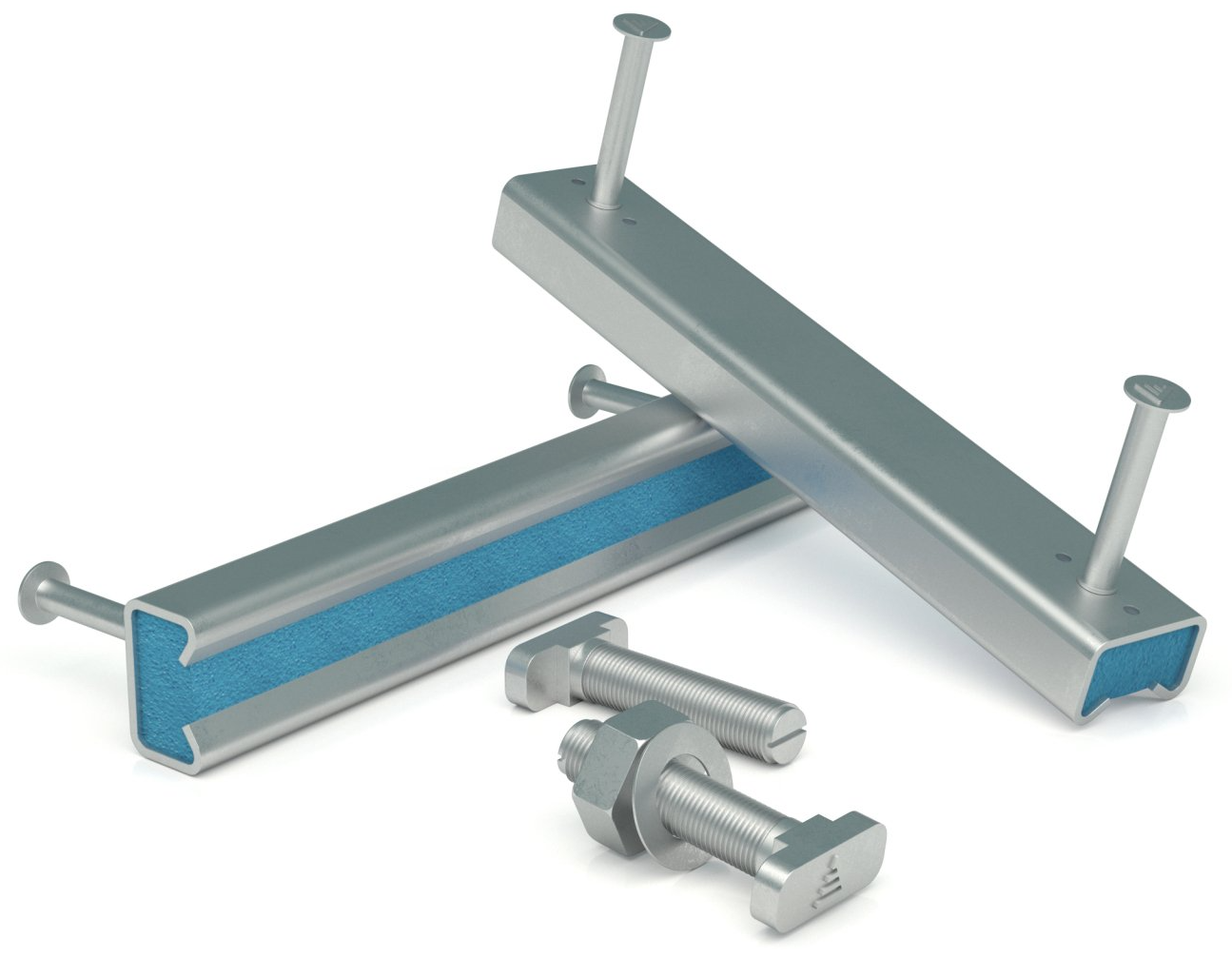 These Cast-in Channels are hot rolled with swaged anchorage studs. They are used extensively to provide accurate and reliable connections to almost any precast or in-situ concrete structure. The channel is supplied with an integral polythene void former infill material which prevents concrete or grout entering the channel. Once the shuttering is removed the polythene void former is removed by hand to expose the rolled channels, which are then ready to accept the T-Bolts appropriate to the size of channel and depth of item being fixed to the channel. The slotted nature of the system means it can readily accommodate any minor deviations in tolerances of follow on fixtures. The system is available in either Hot Dip Galvanised.