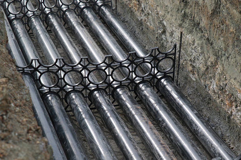 In multi-cable transmission lines (energy ,telecommunication, signalisation, etc.), Monoducts are the plastic spacers for positioning the pipes in different diameters horizontally and vertically. One of the main important speciality of Monoduct System is giving opportunity for making safer and faster installation with less manpower in the trench.