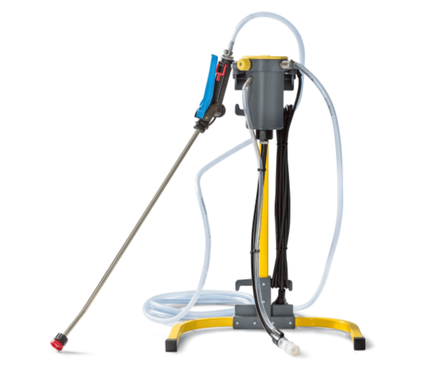 The spray pressure is always generated by a pump and not by compressed air which causes a lot of mist. After you switch on the pump you immediately have a constant and homogeneous spraying result. You save time, money and protect the environment and your health.