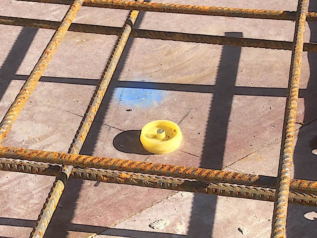 Consisting of a 35mm circular disk that is nailed or screwed to decking formwork. The Tee shaped mould is pushed firmly onto the disk and forms the unique shape into which the Scissorsafe Anchorage tool is inserted when fall arrest or work restraint anchorage is required. Upon completion of the structure, Void formers can be closed off with grout or covered with a Scissorsafe plastic cover cap. These are generally used to disguise void former holes when the anchorage point is to be used for maintenance or repair work.