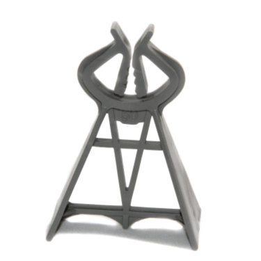 Universal clip on spacer that provides cover of up to 100mm. The design of the feet ensures minimum visibility on the concrete surface. Manufactured in an off white colour.