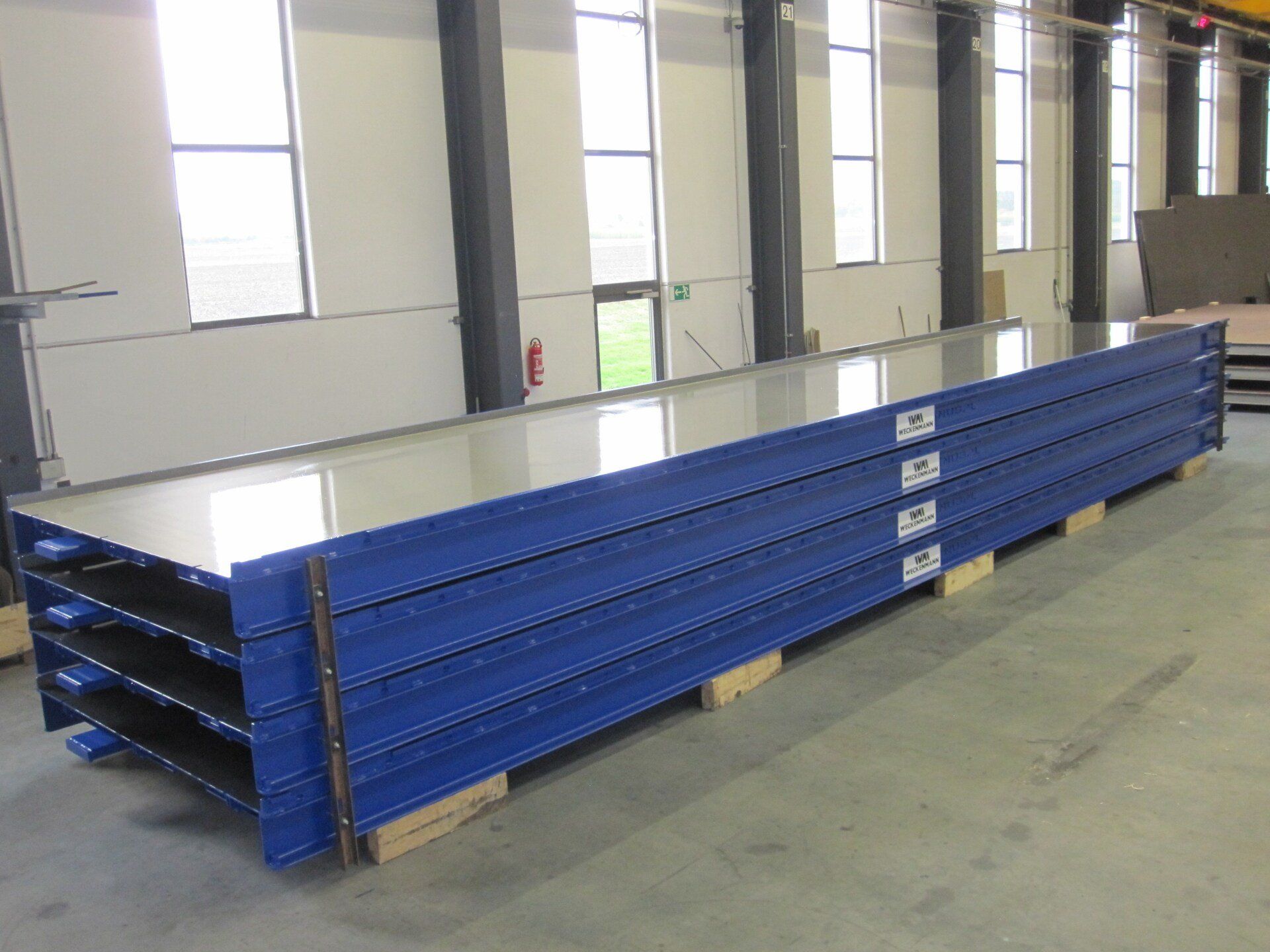 - Shuttering pallets can also be rigidised to absorb the prestressing forces resulting from the production process of prestressed floor slabs, joists and other precast concrete parts.