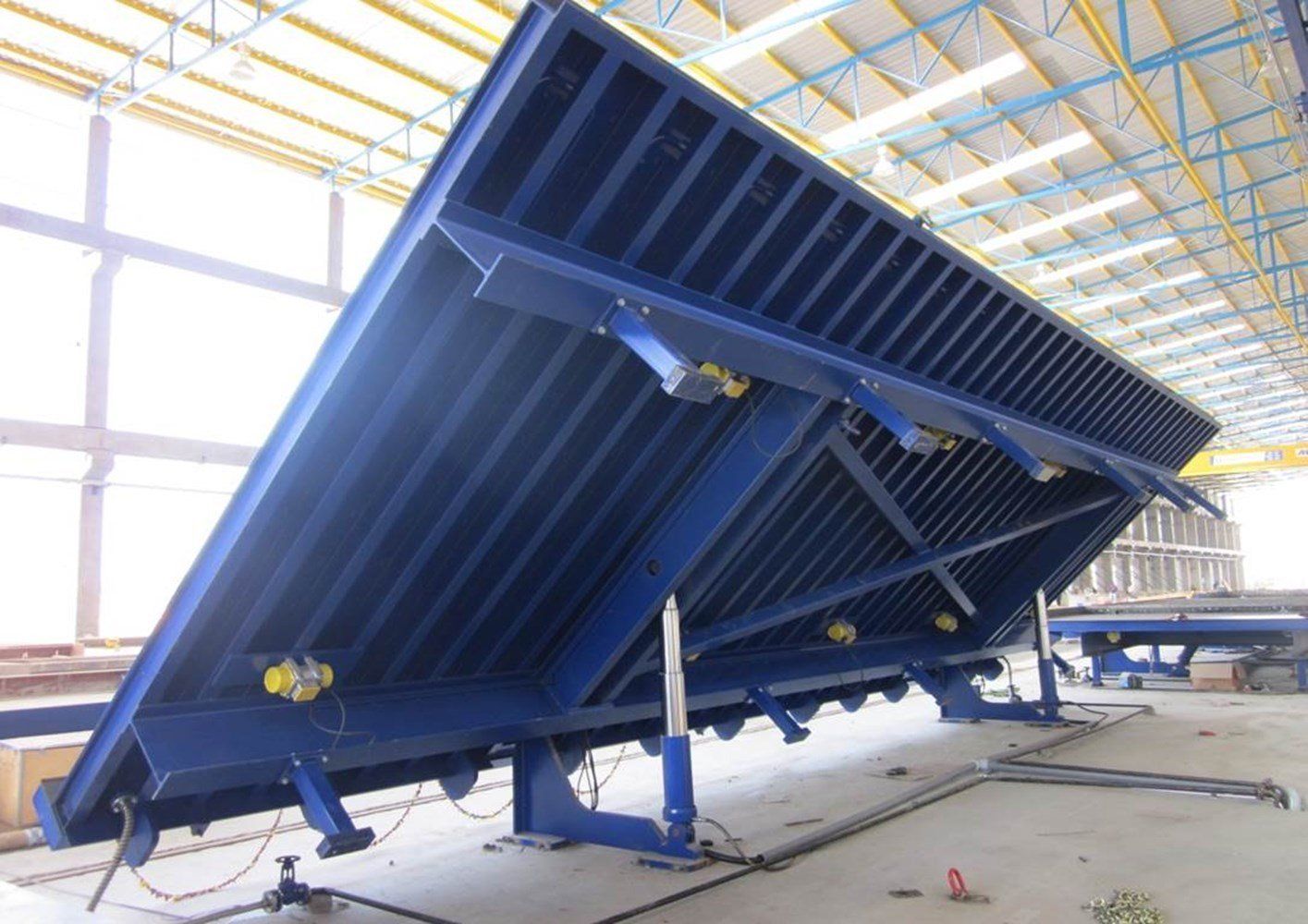 - The shuttering sheet is welded onto a stable and torsionally rigid substructure. The tilting table is securely bolted to the floor.