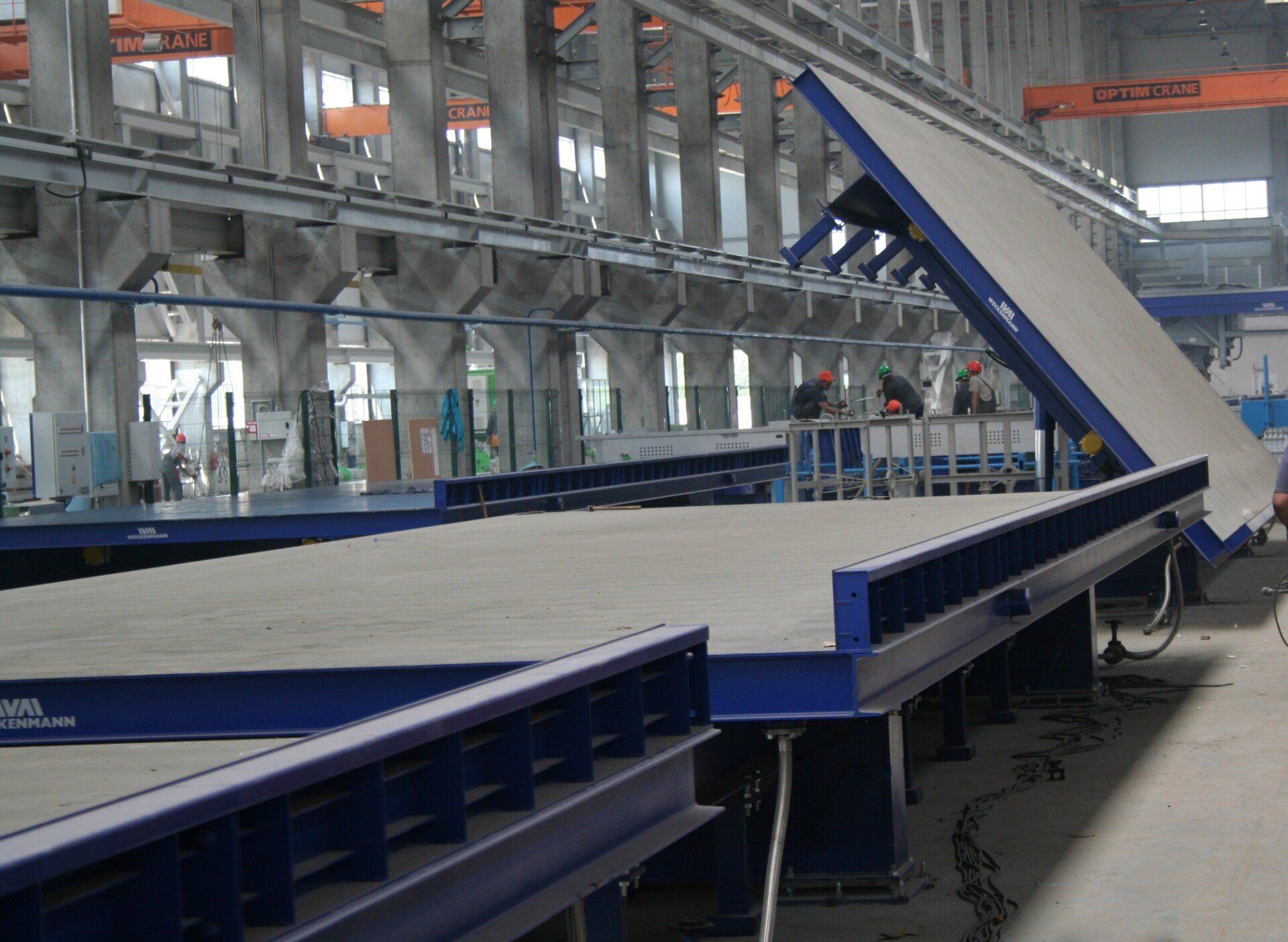 Customised Weckenmann tilting tables allow the horizontal production of walls, facades and special elements. Our production tables have premium-quality mould faces and high-frequency vibrators for perfect concrete compaction. The individual side rails can be customised. Our users produce premium-quality precast concrete parts with our tilting tables, which can be set upright to about 80 degrees with integrated tilting hydraulics or with a tilting mechanism in conjunction with the overhead crane to facilitate demoulding.