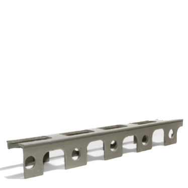 Versatile spacer with a high load-bearing capacity. Due to its unique design it does not overturn easily or break when stood on. Excellent concrete flow characteristics. All sizes are 2 metre lengths.