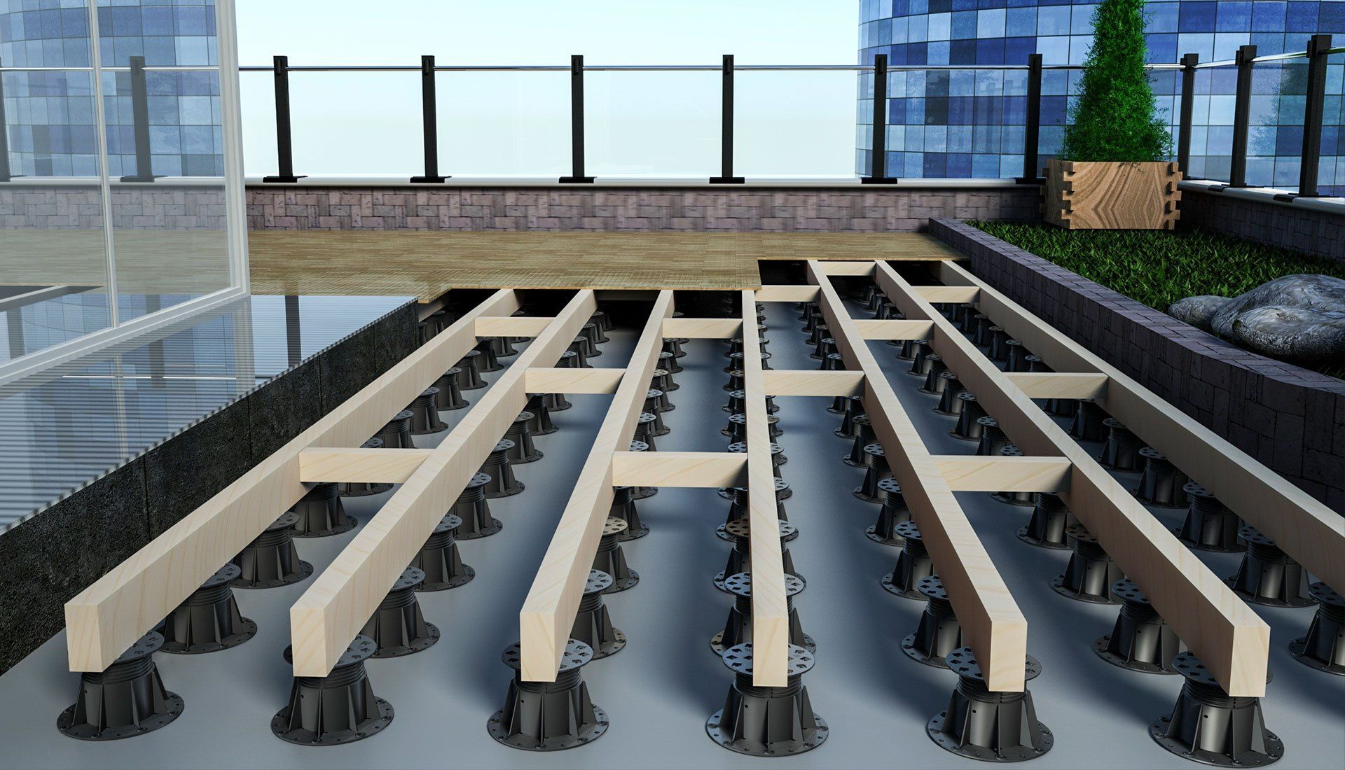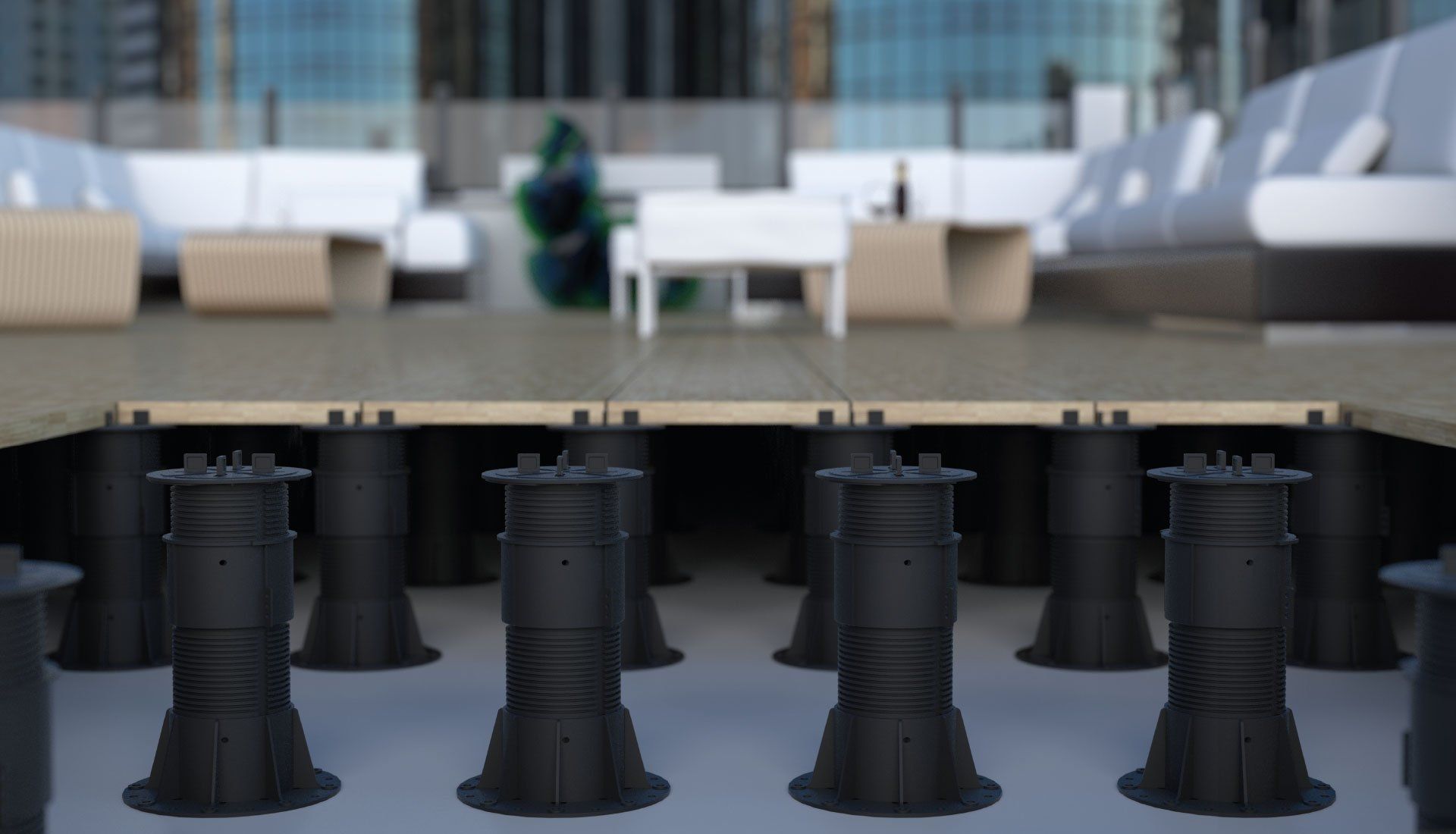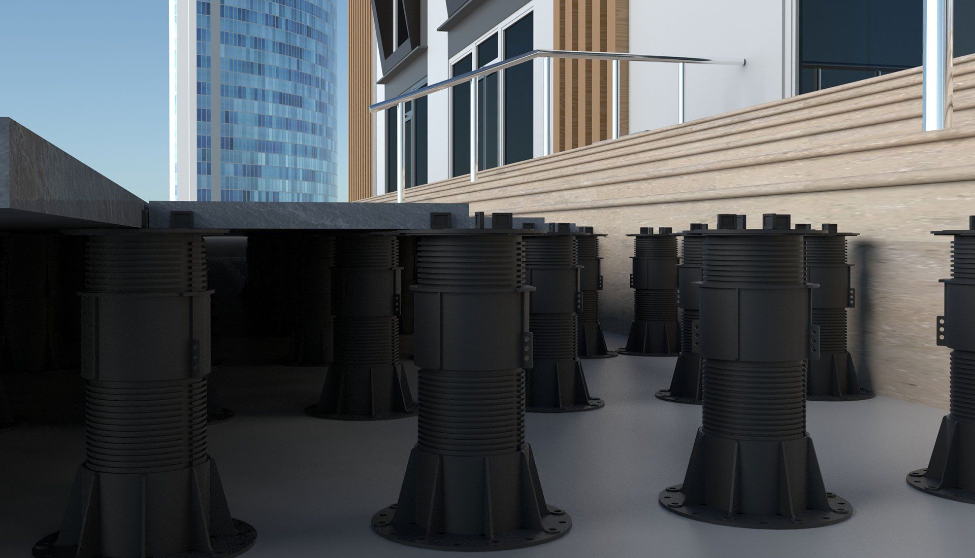 A flexible adjustable paving pedestal system designed for heights between 18mm to 1083mm. The adjustable system has different